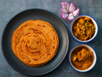 Crispy, multi-layered flatbread, maida-based.