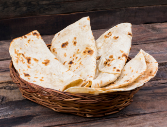 Flaky, layered wheat flatbread, pan-fried.