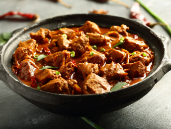 Tender meat cooked in rich spices.